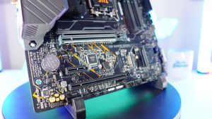 En cuanto a su solución de VRM, esta placa posee una solución de 10 + 2 + 1 fases. Las 10 Primeras a capacidad nominal de 50A cada una, y los restantes a 60A. Una solución suficiente para soportar cualquier procesador de la 12° de INTEL.