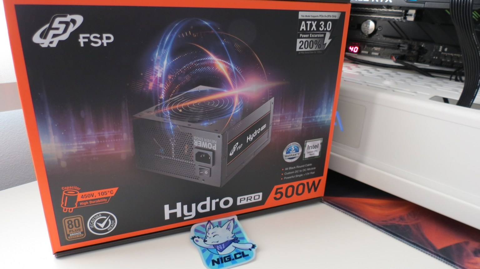 Gracias a NiceOne.cl, contamos con una fuente de poder FSP de 500W, modelo Hydro PRO 500W, certificada ATX 3.0 y compatible con procesadores Intel. Es una fuente no modular, pero destaca por su capacidad y calidad.