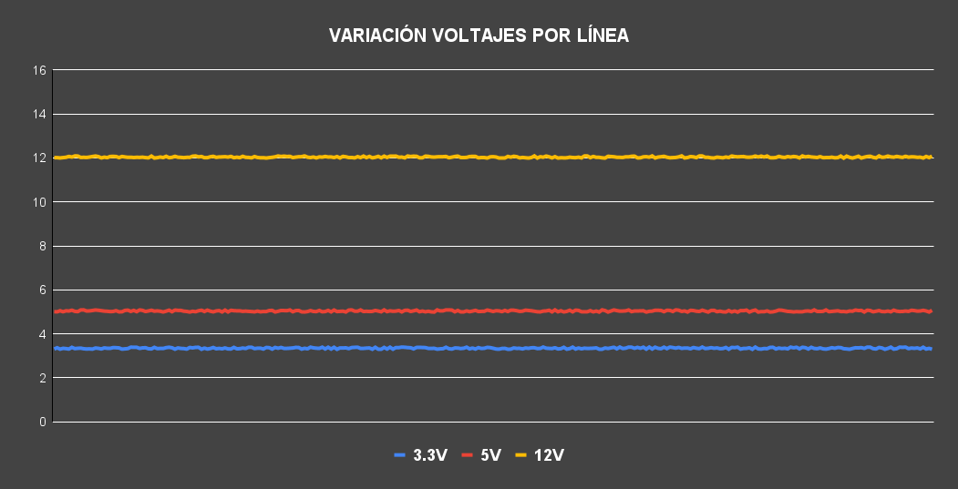 Al ser una fuente no modular, y de baja potencia, se tiene un solo rail de 12V, el cual puede entregar hasta 41A máximo de corriente, lo que se traduce en 492W máx de potencia.