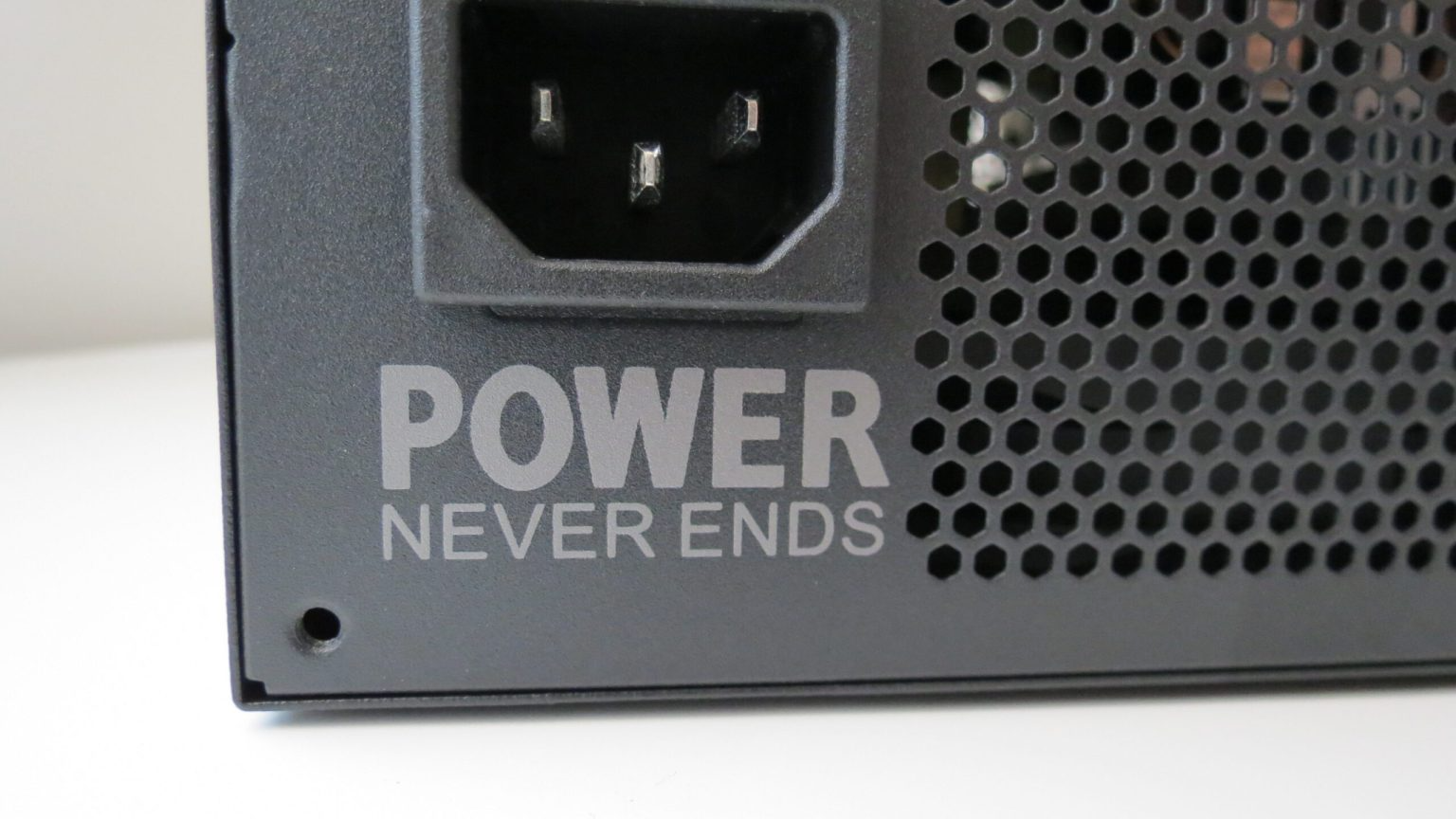 Un lado de la fuente de alimentación alberga un panel de ventilación, un conector de alimentación y un interruptor de encendido. Como se mencionó, no hay un botón de ventilador semipasivo en estas unidades.