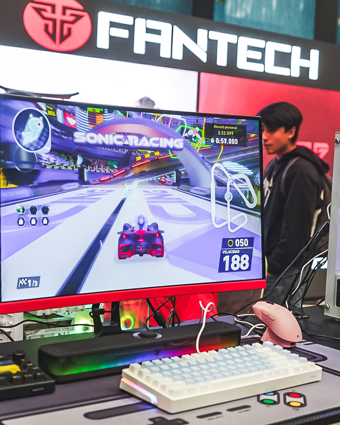 La experiencia Fantech no se limitó solo a exhibiciones: el público participó en torneos del reciente Sonic Racing Cross World, trivias interactivas de Valorant y desafíos temáticos, con la posibilidad de ganar premios exclusivos y productos Fantech.