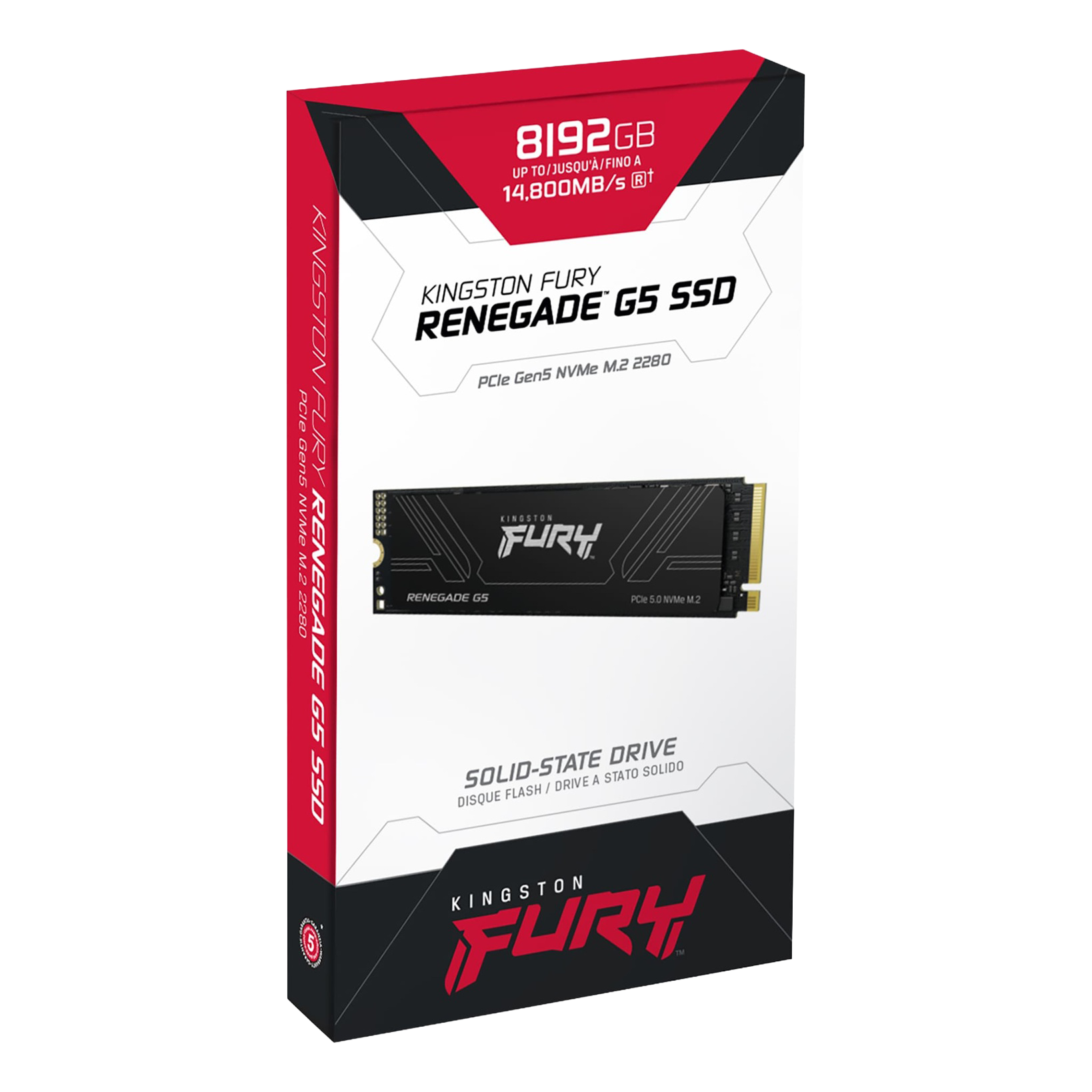 Kingston FURY Renegade G5 está disponible en capacidades2 de 1024GB a 8192GB y cuenta con garantía limitada de cinco años3, soporte técnico gratuito y la legendaria fiabilidad de Kingston. Para más información, visite kingston.com.