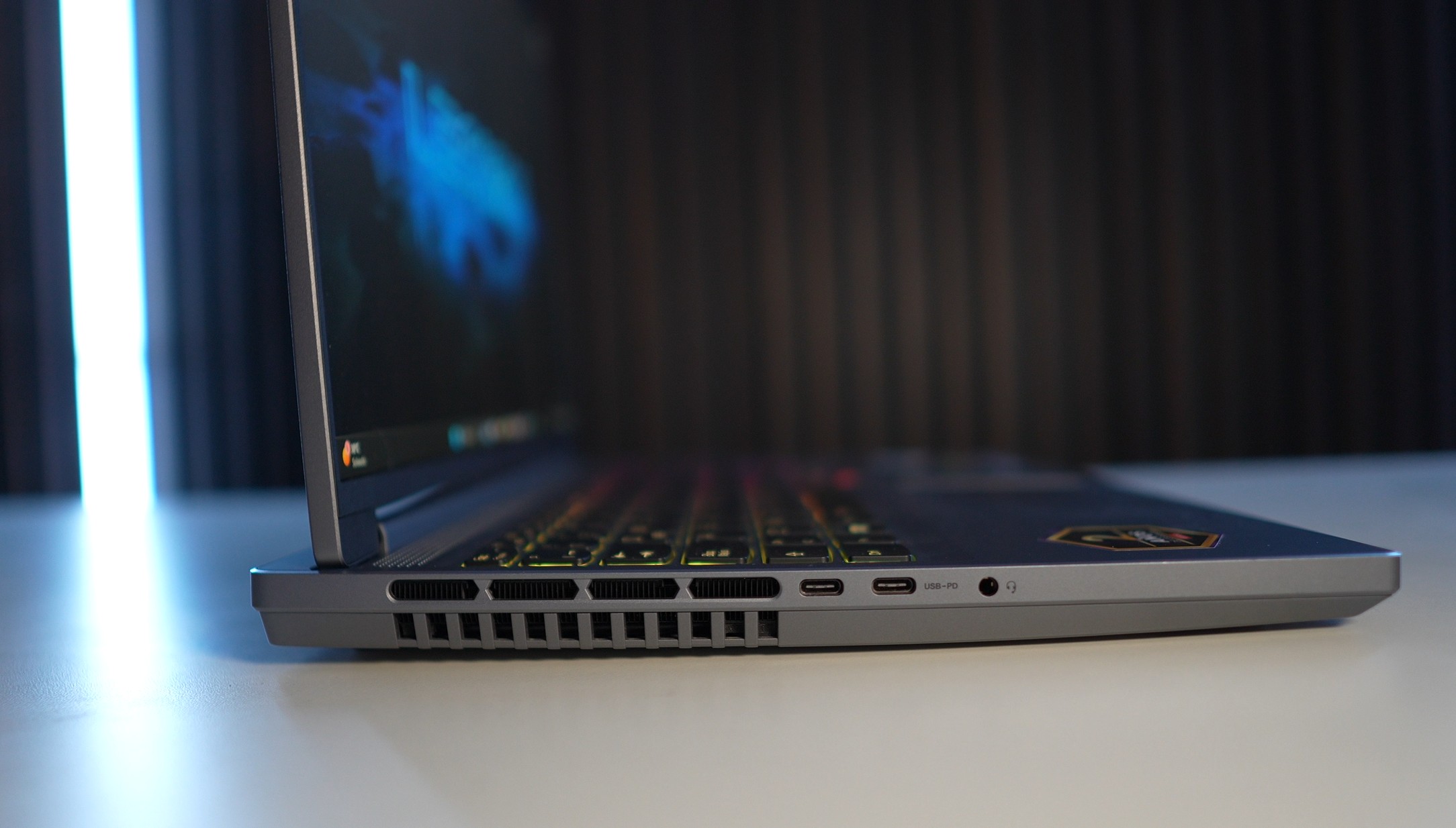 La combinación de todos estos elementos da como resultado un diseño elegante y equilibrado. Aunque carece de iluminación RGB, los detalles presentes en todo el diseño aseguran que el notebook destaque por su apariencia distinguida.