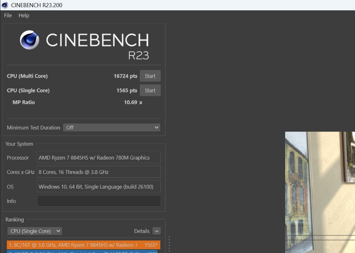 Probamos el procesador con CineBenchR23, obteniendo más de 16,000 puntos en multinúcleo y 1,500 en mononúcleo, lo que demuestra su buen rendimiento tanto en gaming como en aplicaciones de productividad.