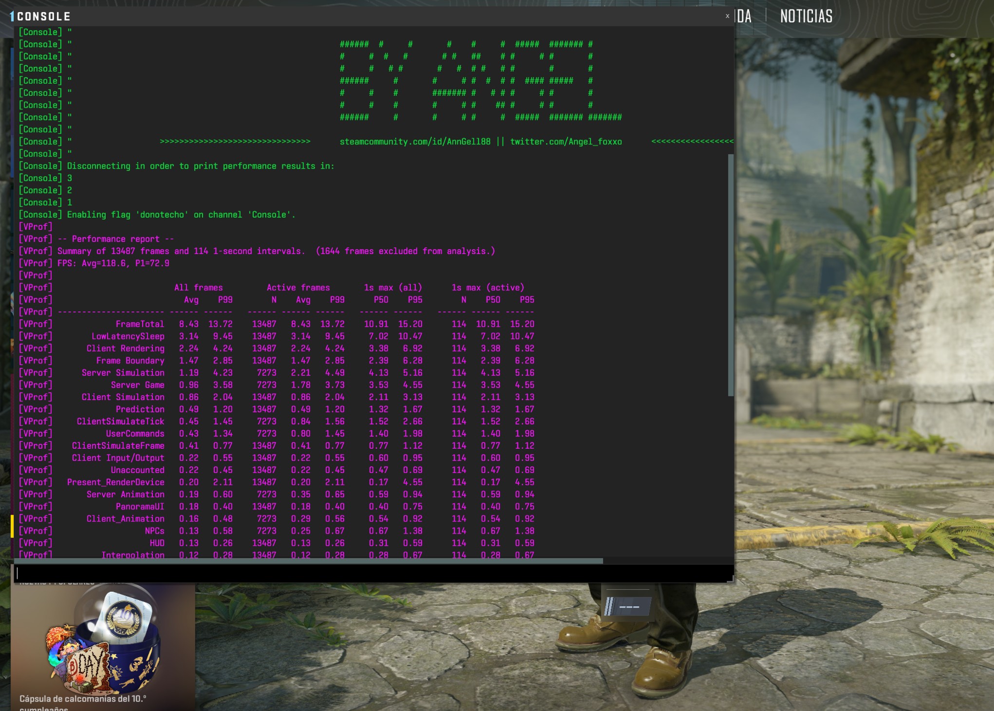 En Counter Strike 2, 2560 x 1600 calidad muy alta, obtenemos unos 120 FPS.