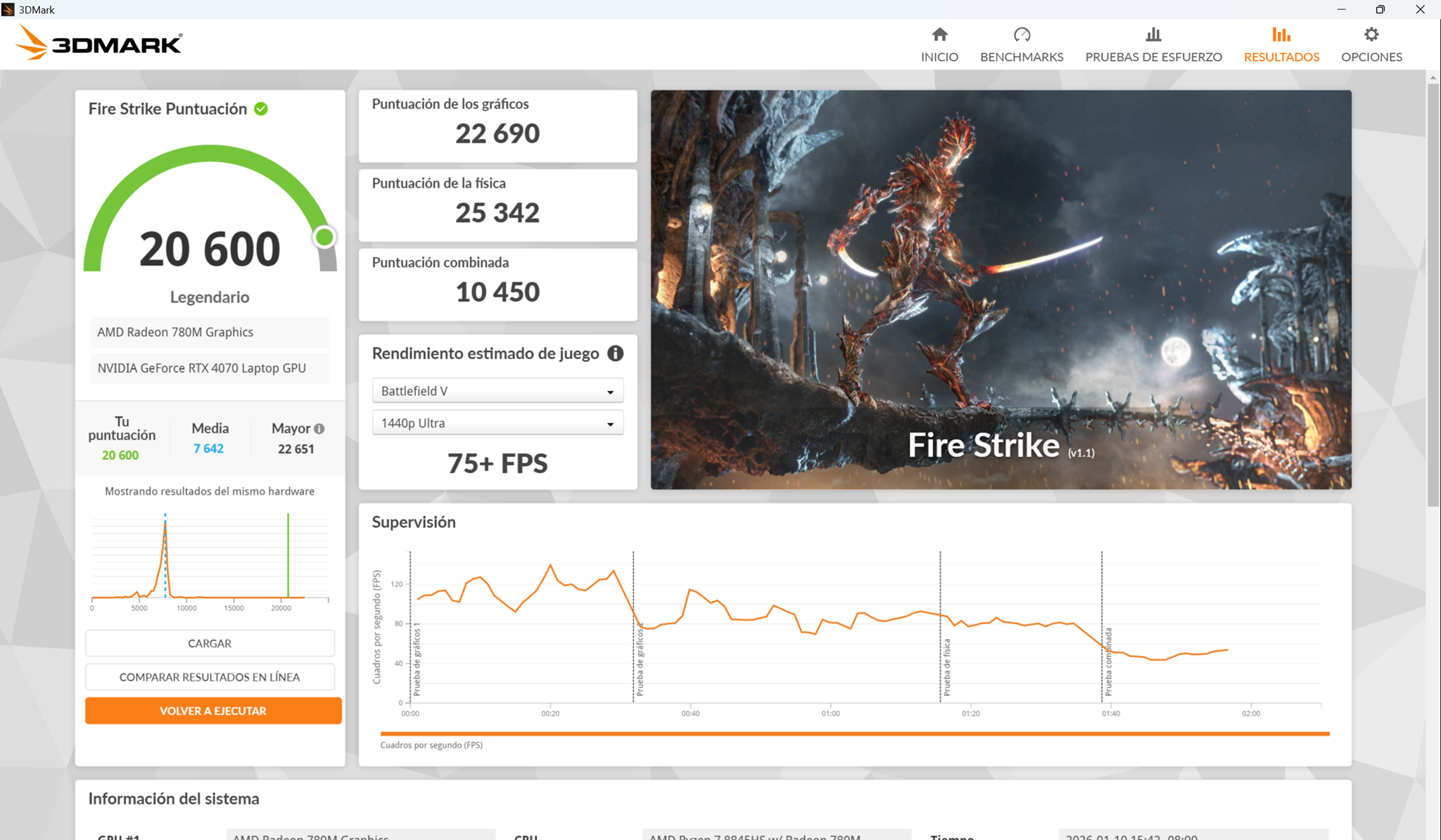 Ahora pasemos a la Suite 3dmark, y en pantalla van viendo los resultados, que la verdad en todas las pruebas saca muy buenos resultados.