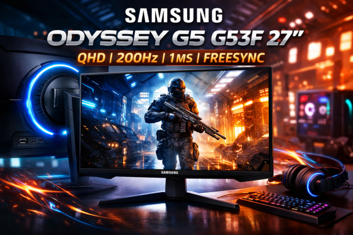 Uno de los aspectos más destacados del Samsung Odyssey G5 G53F es su rendimiento en juegos rápidos. El monitor incorpora una tasa de refresco de hasta 200 Hz, lo que permite mostrar hasta 200 imágenes por segundo, generando animaciones mucho más fluidas y reduciendo el desenfoque de movimiento durante partidas intensas.