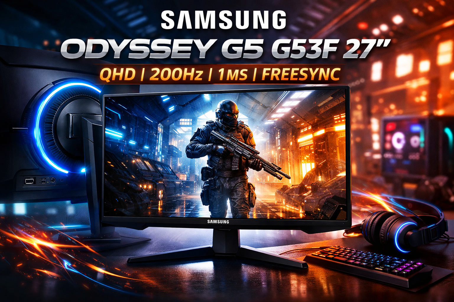 Este modelo forma parte de la reconocida familia Odyssey de Samsung, una línea de monitores enfocada en gamers que buscan mayor rendimiento visual. Con un panel IPS de 27 pulgadas y resolución QHD (2560 x 1440), el G53F entrega imágenes mucho más detalladas que un monitor Full HD tradicional, alcanzando aproximadamente 1,7 veces más densidad de píxeles, lo que se traduce en gráficos más nítidos tanto en juegos como en contenido multimedia o trabajo creativo.