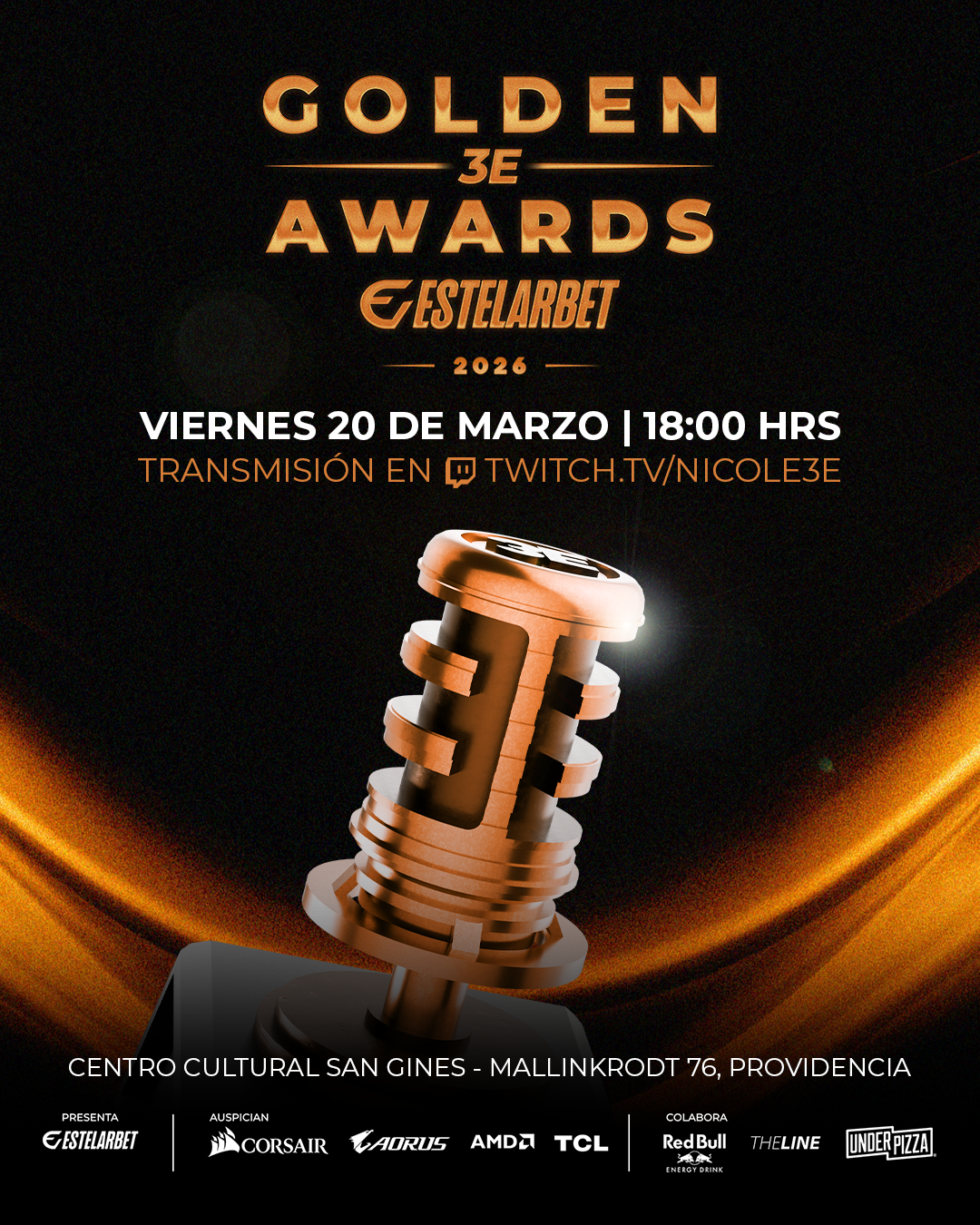 Este 20 de marzo, Santiago celebraro lo mejor del streaming en una nueva edición de los 3E Golden Awards EstelarBet Chile, una ceremonia que reconocerá a los creadores de contenido que marcaron 2025 en el mundo digital.