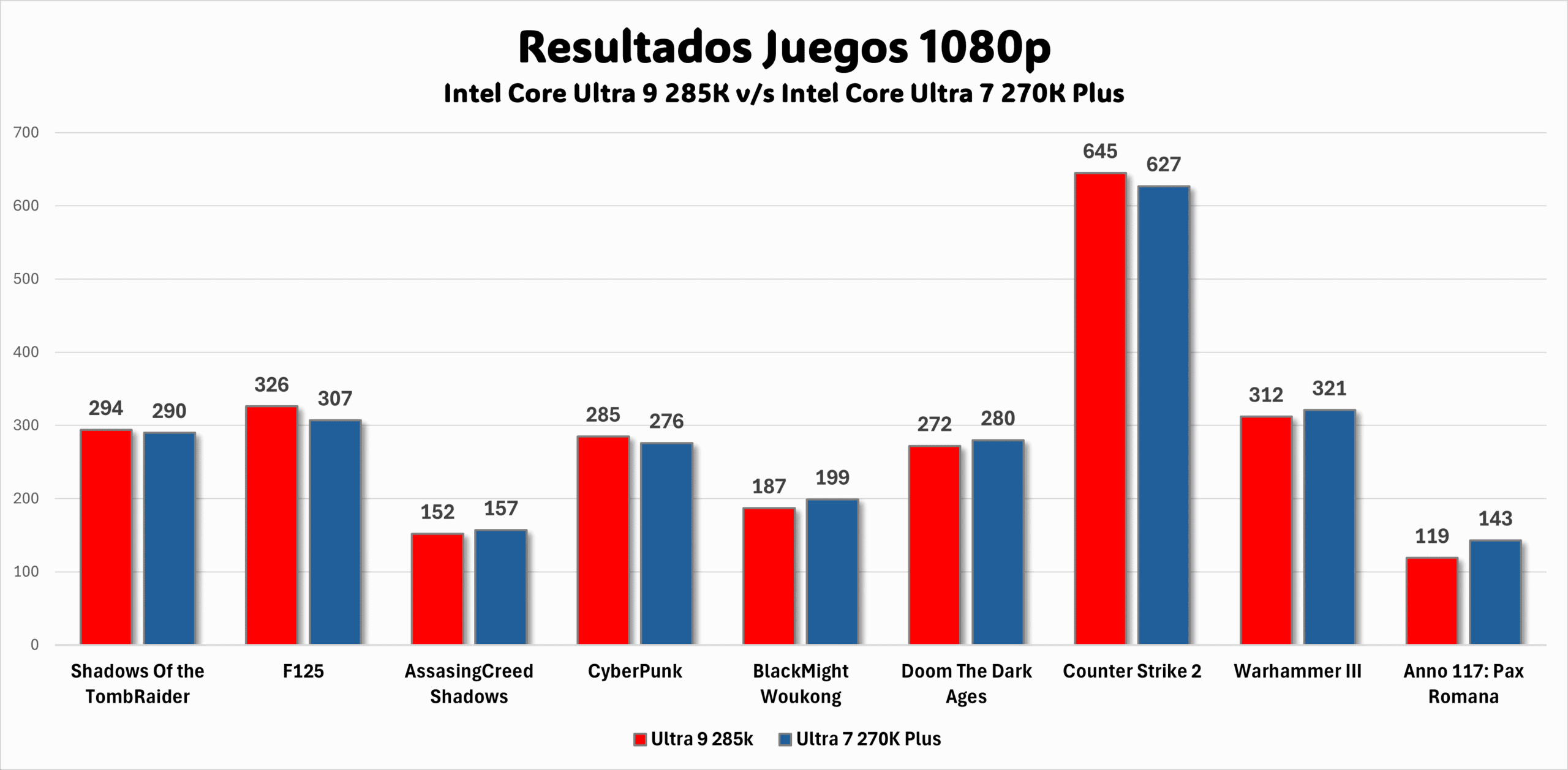 Pruebas Intel Core Ultra 7 270K PLUS v/s Intel Core Ultra 7 265K