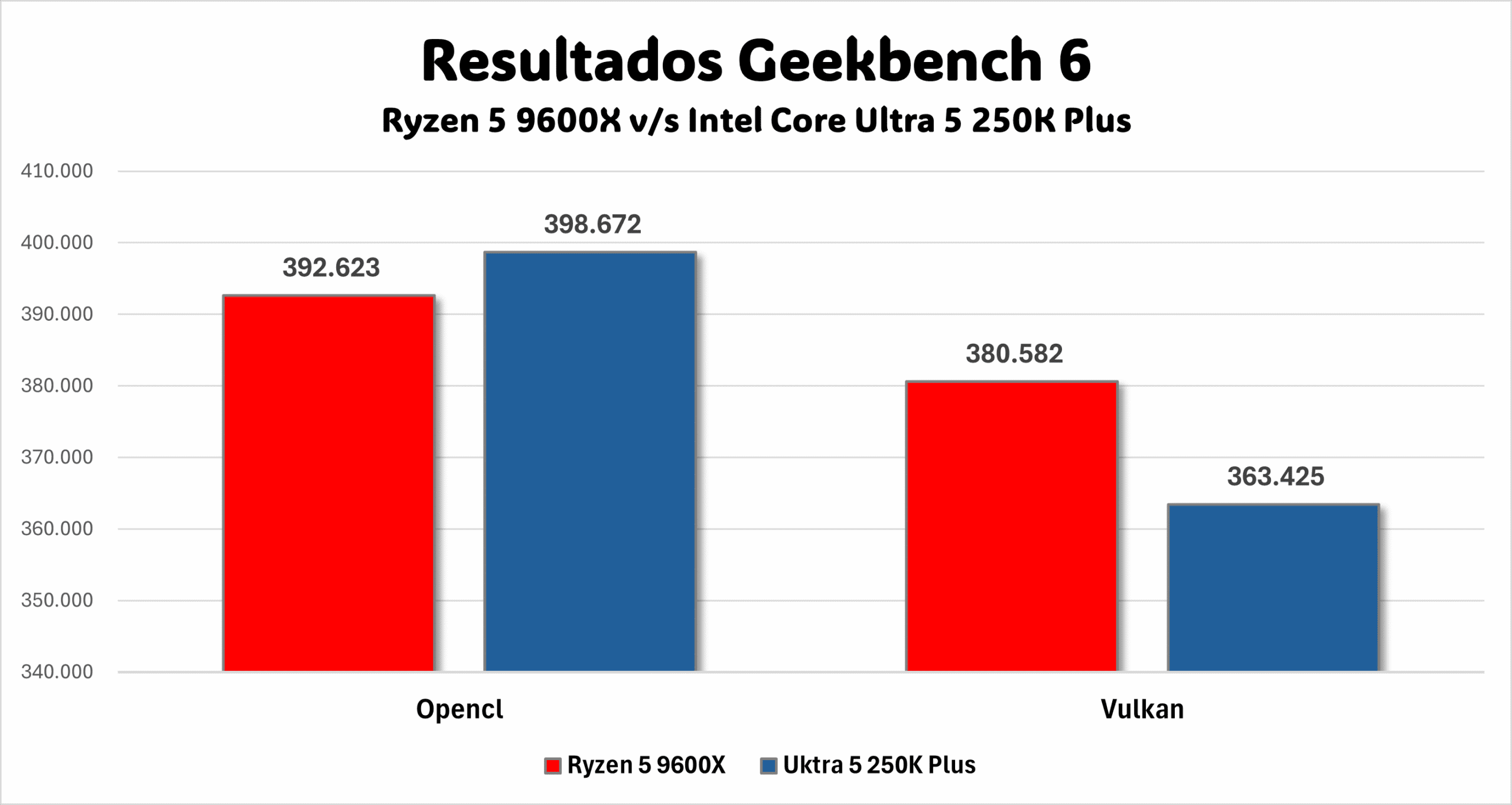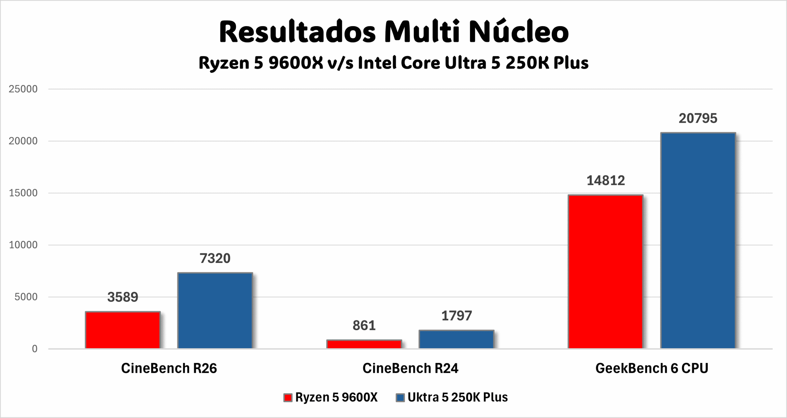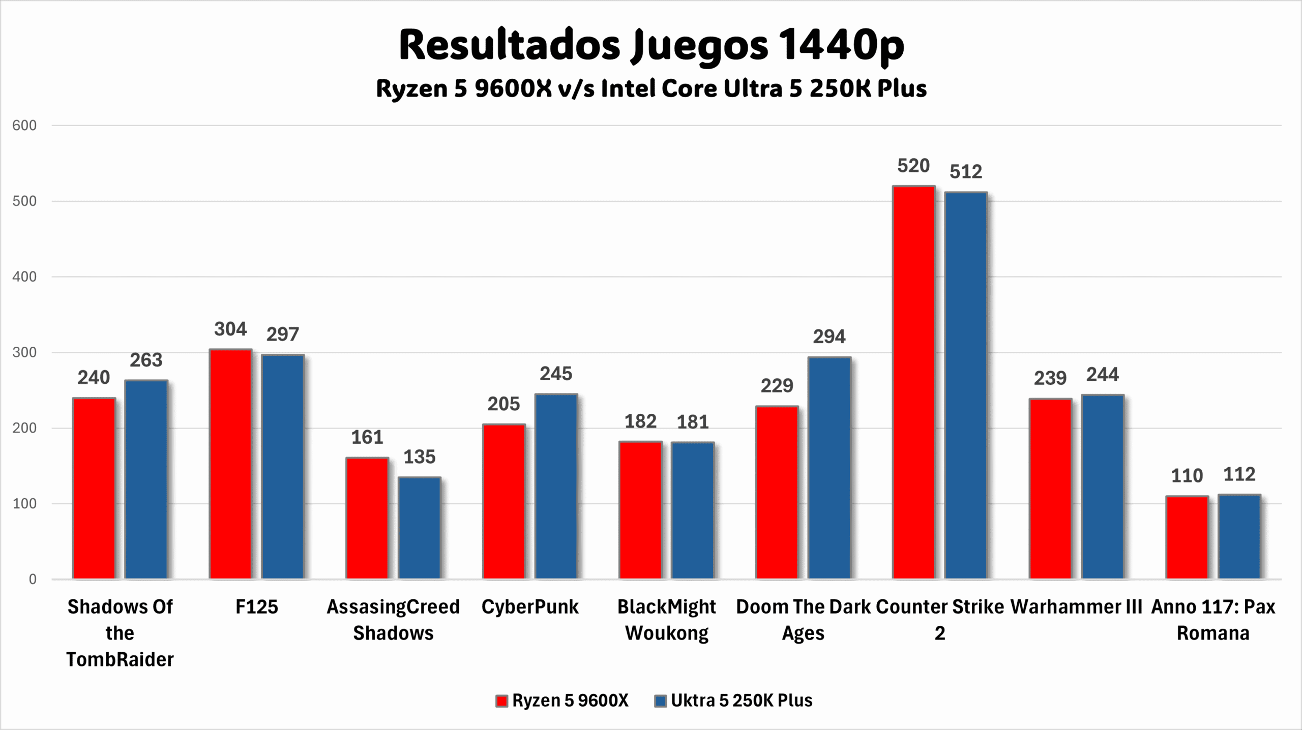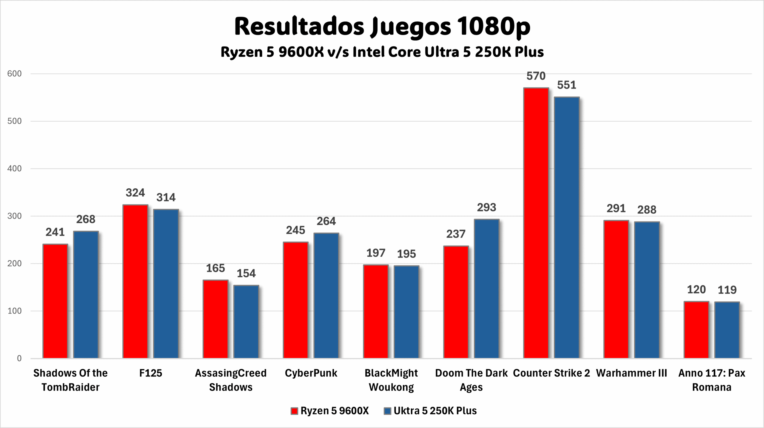 Pruebas Intel Core Ultra 5 250K PLUS v/s Ryzen 5 9600X