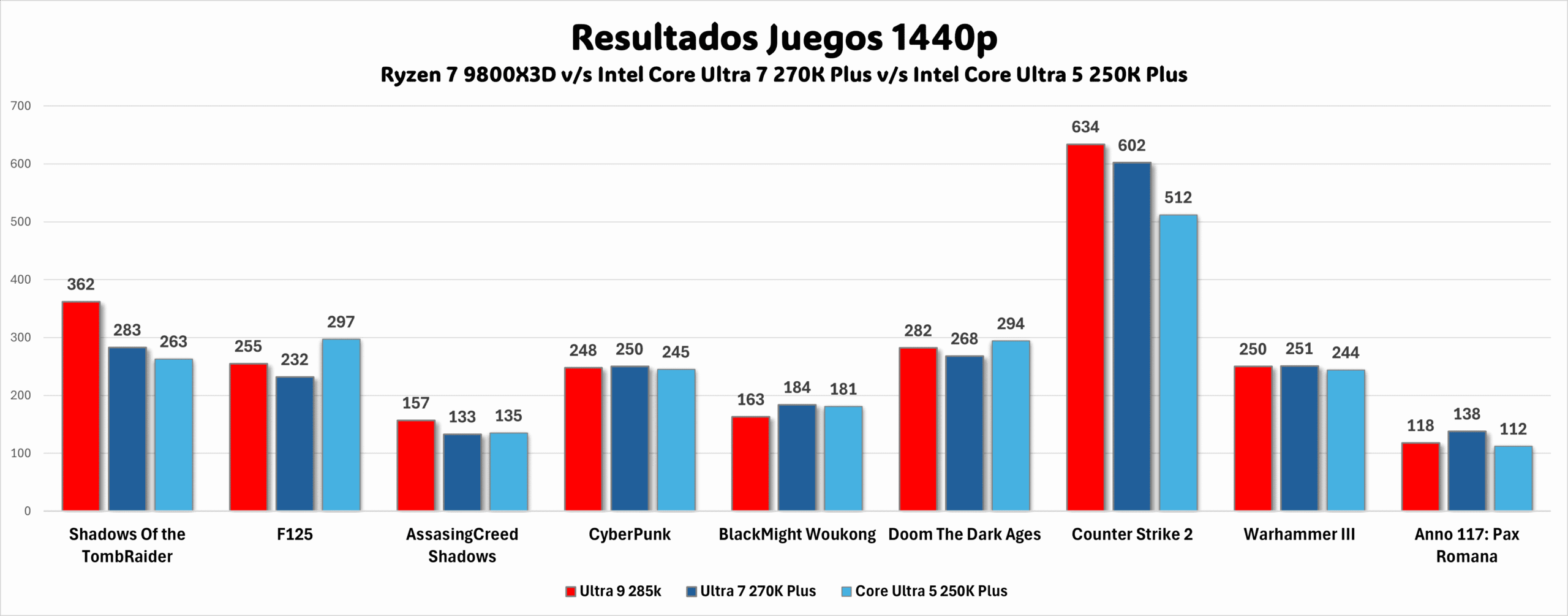 Después de revisar todo lo anterior, llega el momento que más interesa: los juegos. En esta sección analizaremos el rendimiento de nueve títulos a resoluciones de 1080p y 1440p, evaluando cómo funcionan estos procesadores en el ámbito del gaming.