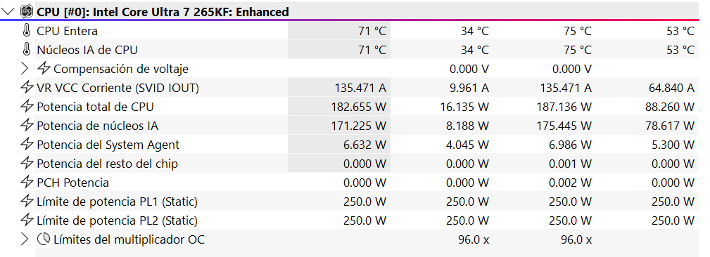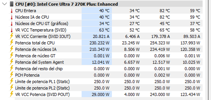 Y por si se preguntan, como están en apartado de temperaturas y consumos, tomemos el ejemplo del Intel Core Ultra 7 270K PLUS, en comparación con su hermano el Core Ultra 7 265KF.