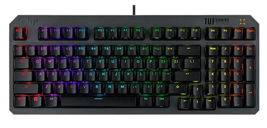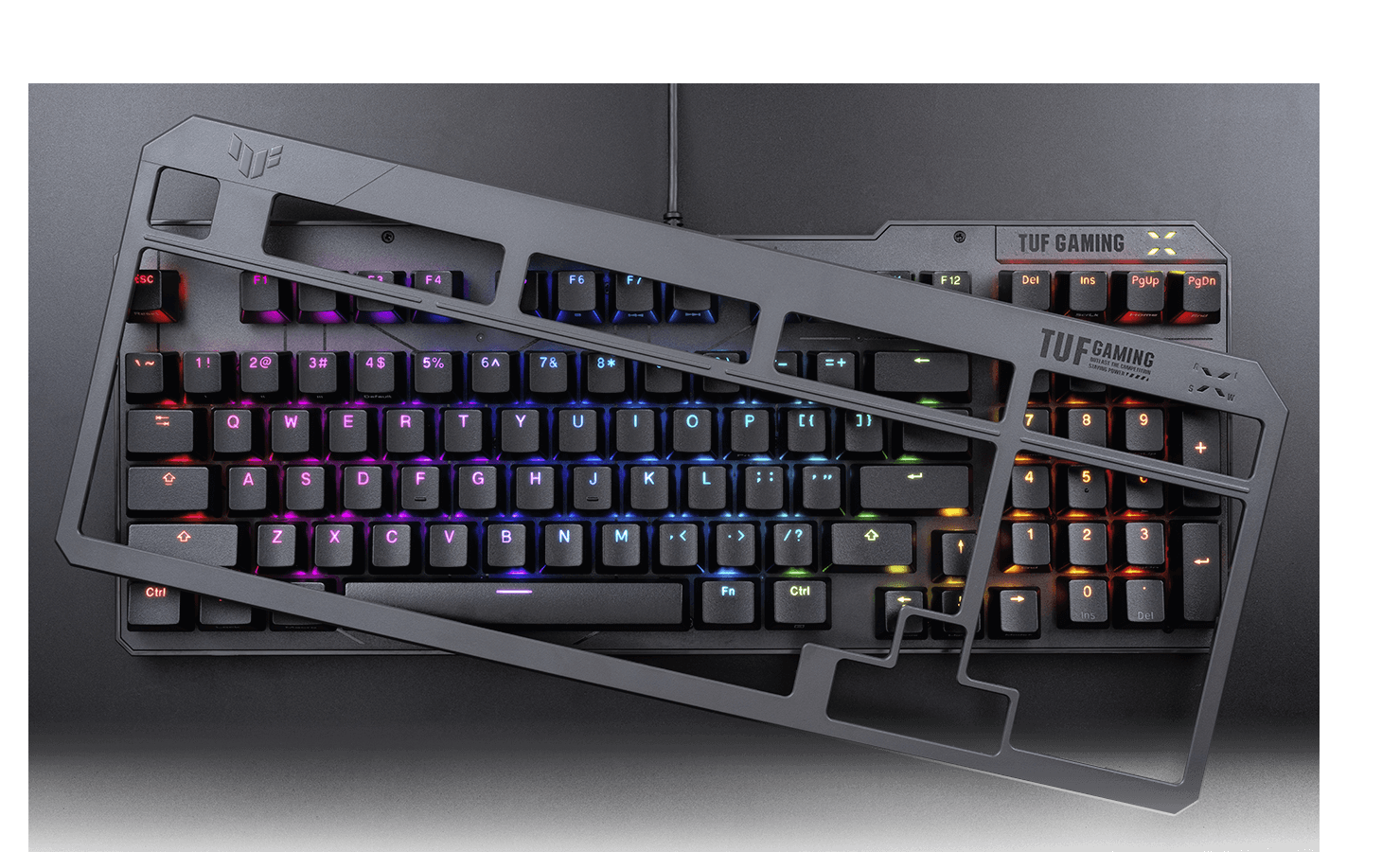 El TUF Gaming K3 Gen II destaca desde el primer momento por su construcción robusta y enfoque en durabilidad. Este teclado adopta un formato compacto del 96%, lo que permite optimizar el espacio en el escritorio sin sacrificar funcionalidad clave.