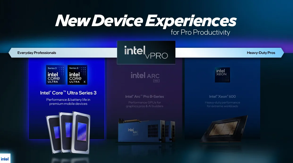 Intel® presentó hoy sus nuevos procesadores para equipos móviles Intel Core™ Serie 3, que ofrecen un rendimiento avanzado, una duración de batería excepcional y capacidades preparadas para la IA a compradores que buscan la mejor relación calidad-precio, así como a dispositivos comerciales y de edge computing esenciales.